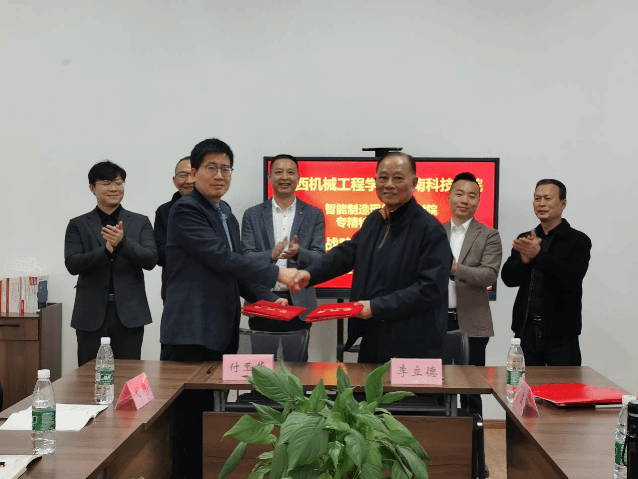 在与江西省机械工程学会“校会战略合作”签约仪式上,李立德与付玉华就建立“政校企会”制度体系,加强与各类相关院校、科研院所、行业企业与地方政府之间的沟通交流,推动产教、校企、校地深度融合,发挥智能制造现代产业公司的特色优势,进一步增强创新性高素质应用型人才育人能力,提升公司服务地方经济社会发展能力等方面进行了深入交流。