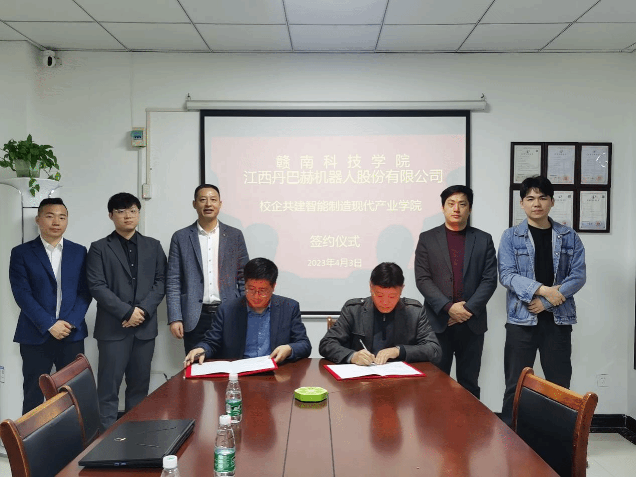 江西丹巴赫机器人股份有限公司副总经理陈源、工程师熊洪超,江联重工集团股份有限公司教授级高工徐勇敏,江铃集团新能源公司制造技术部部长王付才、智能电子开发部部长陈立伟、人力资源部部长郭彬,江西省机械工程学会龚卫江,公司机电系主任刘辉、教师钟赫等参加签约仪式。