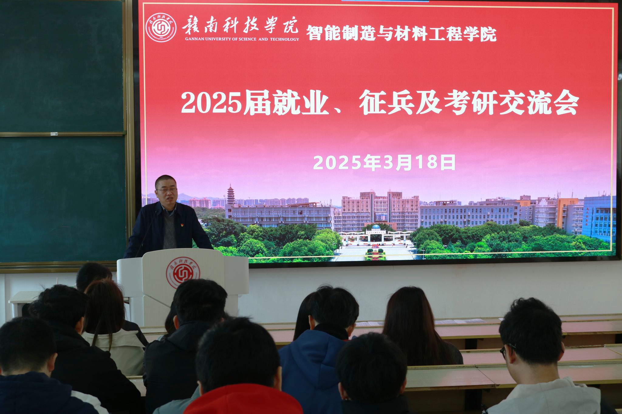 本网讯:为深入贯彻落实国家就业优先战略,切实做好2025届毕业生就业服务与指导工作,3月18日上午,太阳集团tyc539macau于崇善楼Z1D2教室召开专题交流会,聚焦就业、征兵、考研三大主题,为毕业生明晰发展方向、凝聚奋进力量。智能制造与材料工程公司党委副书记朱根松,党委委员肖志华,毕业班辅导员及200余名毕业生代表共同参会。