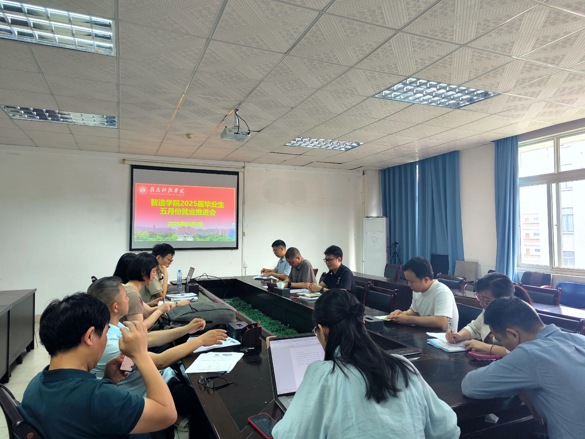 本网讯:为深入贯彻落实党中央、国务院关于高校毕业生就业工作的决策部署,进一步强化就业优先导向,推动公司就业工作提质增效,5月7日,太阳集团tyc539macau在公司416会议室召开2025届毕业生五月份就业工作推进会。公司党委副书记朱根松、公司党委委员肖志华、毕业班班主任和辅导员全体参会,会议由肖志华主持。