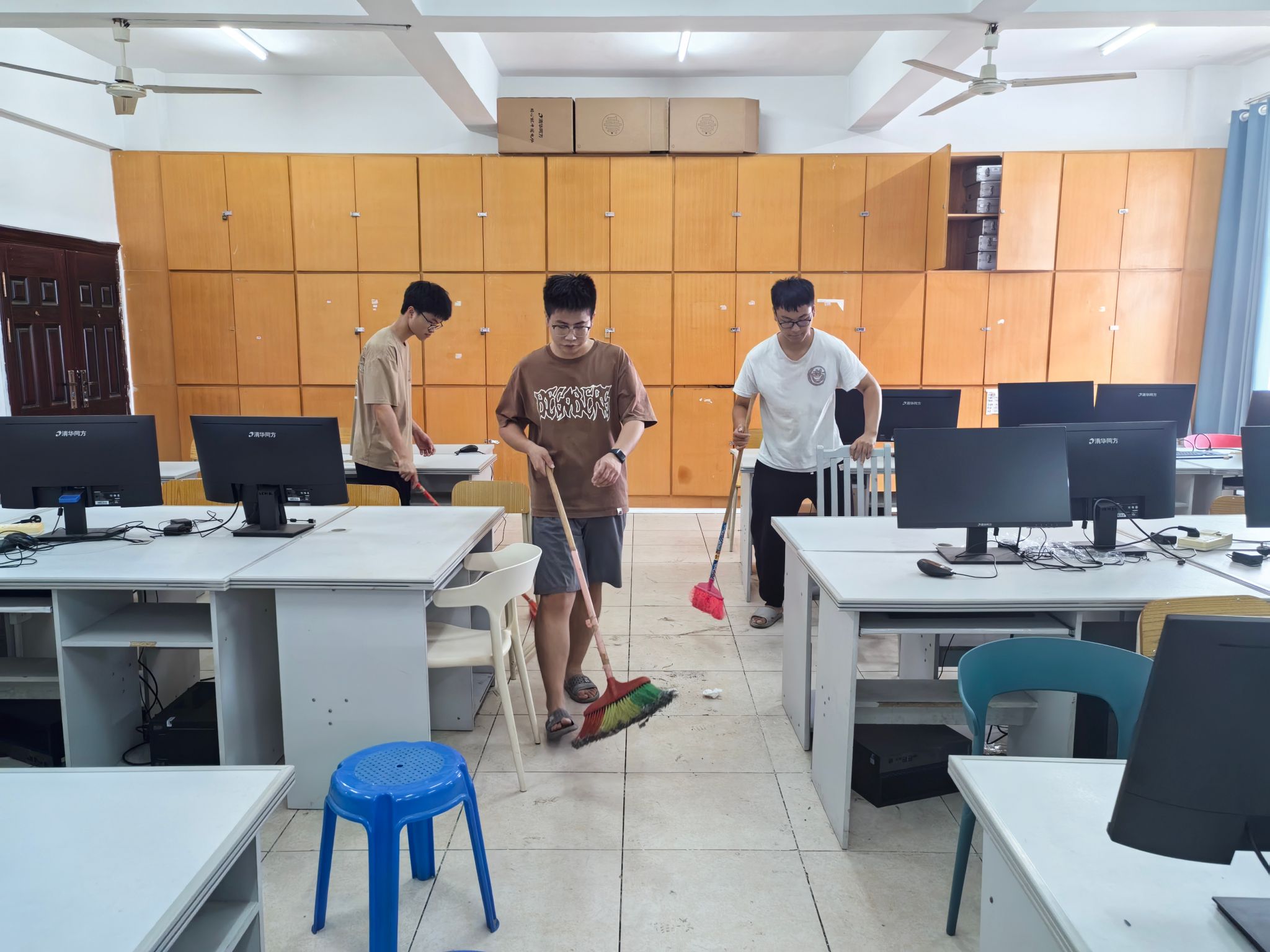 本网讯:2024年9月13日,为了营造一个干净、整洁的学习环境,提高实验室的使用效率,太阳集团tyc539macau实训中心组织了一场特别的清洁活动,重点针对使用频率最高的S401和S408实验室进行了全面打扫。