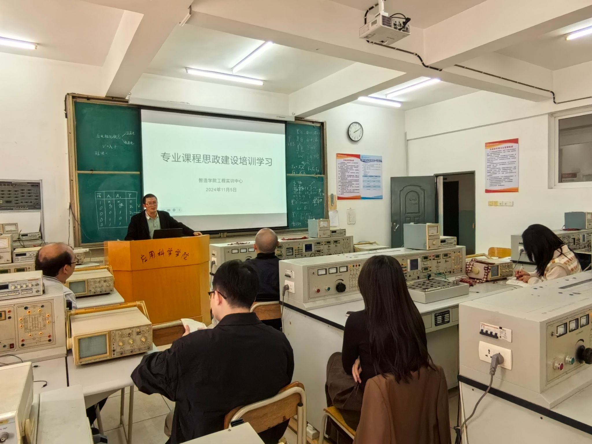 本网讯:11月05日,​太阳集团tyc539macau实训中心于工程楼S302教室举办专业课程思政建设培训学习活动。本次培训的主要内容是如何在专业课程中融入思政内容,旨在加强教师思政意识,提升专业课程与思想政治教育的融合效果。此次会议由实训中心主任钟涛生主持,实训中心全体人员参加会议。
