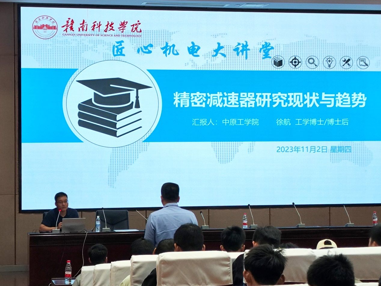 本网讯:2023年11月2日上午,中原工公司副教授徐航应邀在逸夫楼学术报告厅作了题为“精密减速器研究现状与趋势”的学术报告。报告会由机电工程系主任刘辉老师主持,师生代表200余人聆听了报告。