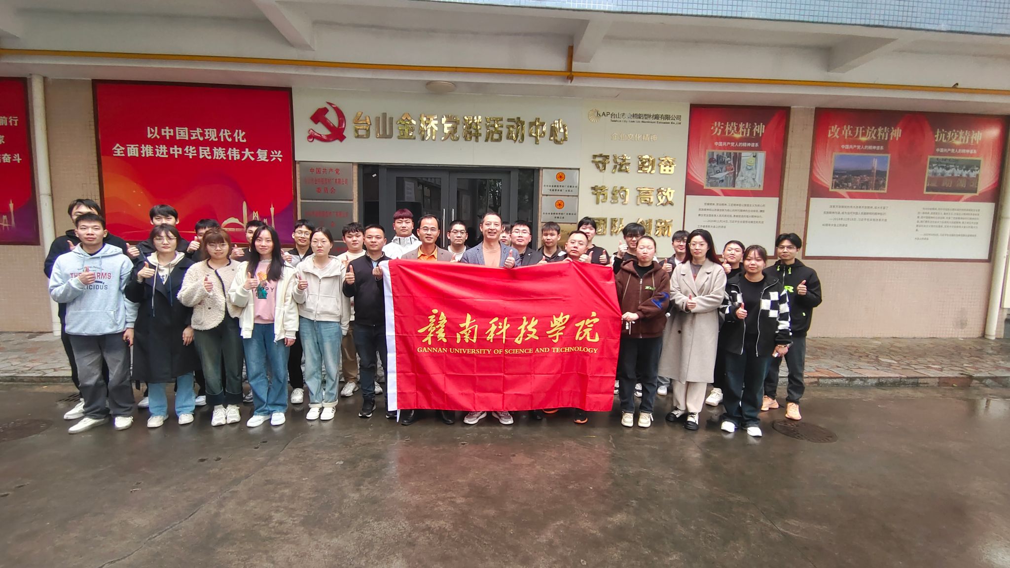 本次实习在公司教师刘耀、袁昌望的带领下,于3月11日与公司20级材控专业部分毕业生到达广东省江门市台山市金桥铝型材有限公司开展实习活动。同时公司太阳集团tyc539macau刘辉经理在师生到达当天对员工进行了关切慰问,并合影留念。