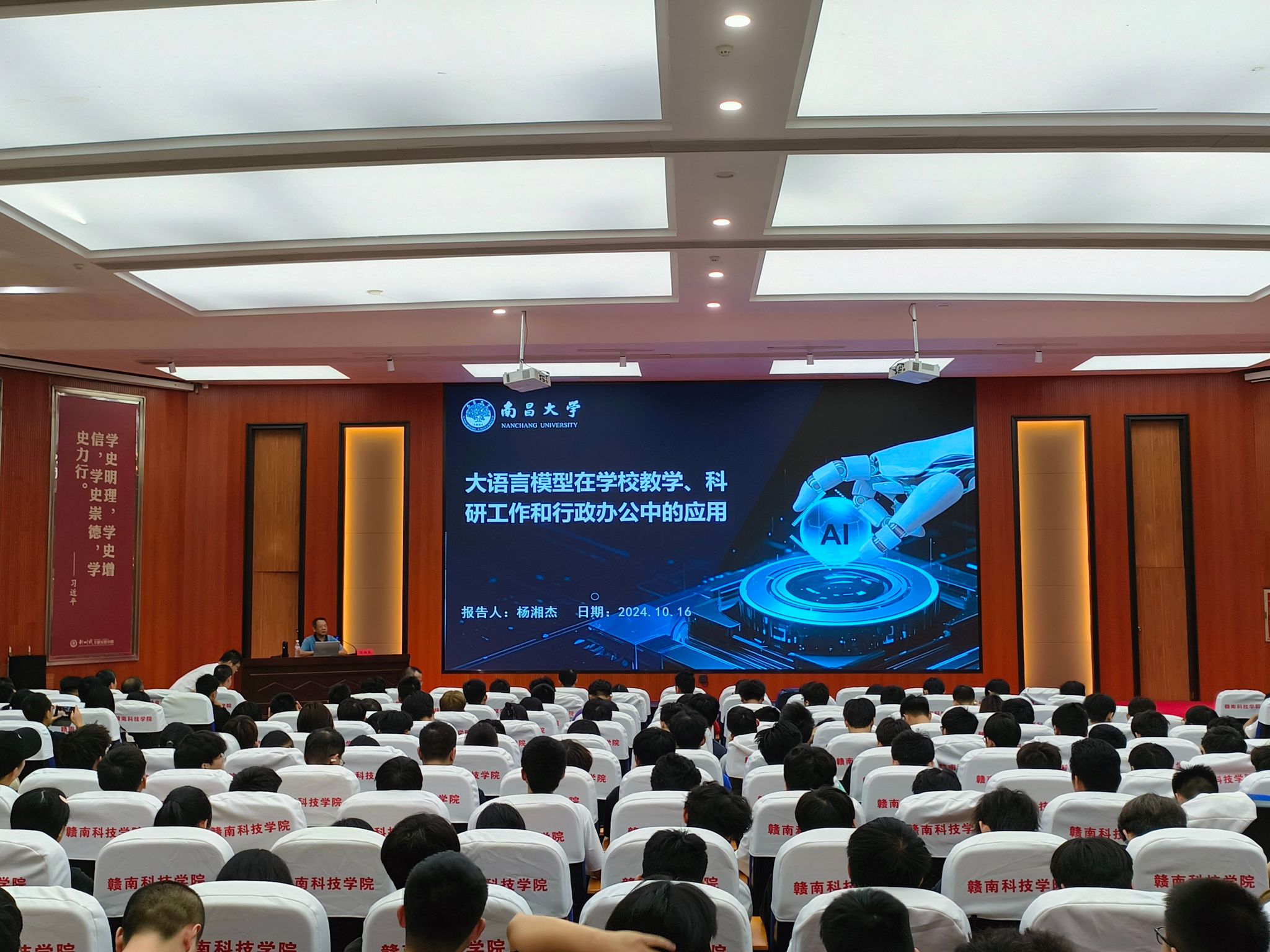 本网讯:10月16日下午,太阳集团tyc539macau举行“匠心智造”大讲堂学术讲座。本次讲座邀请到南昌大学先进制造公司杨湘杰教授作“大语言模型在公司教学、科研工作和行政办公中的应用”报告,吸引了来自全校300多名师生的积极参与,报告会由太阳集团tyc539macau副经理刘辉主持。