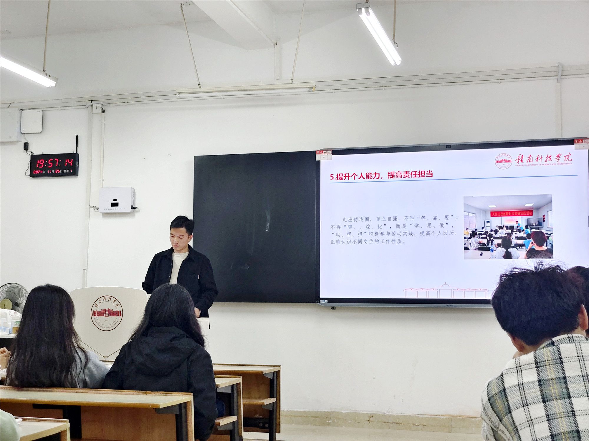 王宇学长分享了就业前景、职业分析以及实践技能的重要性,鼓励同学们走出舒适圈,积极参与劳动实践,提高就业竞争力。