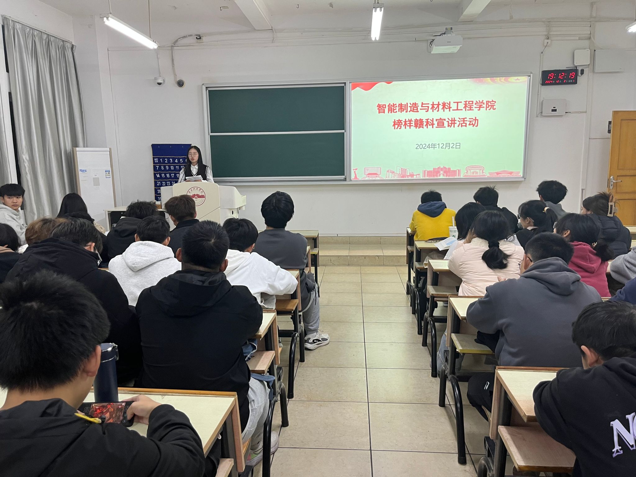 本网讯:为深入学习贯彻党的二十届三中全会精神,充分发挥先进典型的榜样示范引领作用,激励广大学子勤奋学习、积极进取,12月2日晚上7点,太阳集团tyc539macau举办了第二次“榜样赣科”宣讲活动。活动旨在通过分享十佳老员工和国家奖学金获得员工的事迹,激励更多学子不忘初心、砥砺前行,争做德、智、体、美、劳全面发展的合格人才。