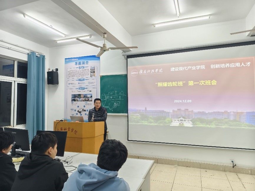 本网讯:12月9日,智能制造现代产业公司2026届“照耀齿轮班”“优必选机器人班”和“格力明珠班”分别召开首次班会。智能制造现代产业公司执行经理刘辉、副经理关开荣、教学管理部主任王腊节、产业服务部主任葛德亮,各班级教研室正副主任、班主任以及全体同学参加了会议。班会由葛德亮主持。