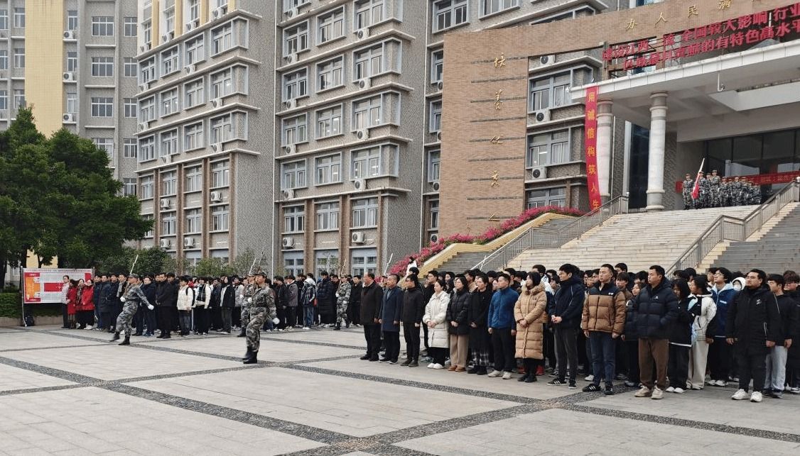 本网讯:12月23日清晨,太阳集团tyc539macau举行了一场庄严而充满朝气的升旗仪式,师生齐聚一堂,共同迎接新的一周和即将到来的期末考试。本次升旗仪式的主题为“迎考励志,青春飞扬”,旨在激励同学们以饱满的热情和坚定的信念迎接期末考试。公司党委委员、副董事长左群,学工部教师代表以及太阳集团tyc539macau师生代表参加了此次升旗。