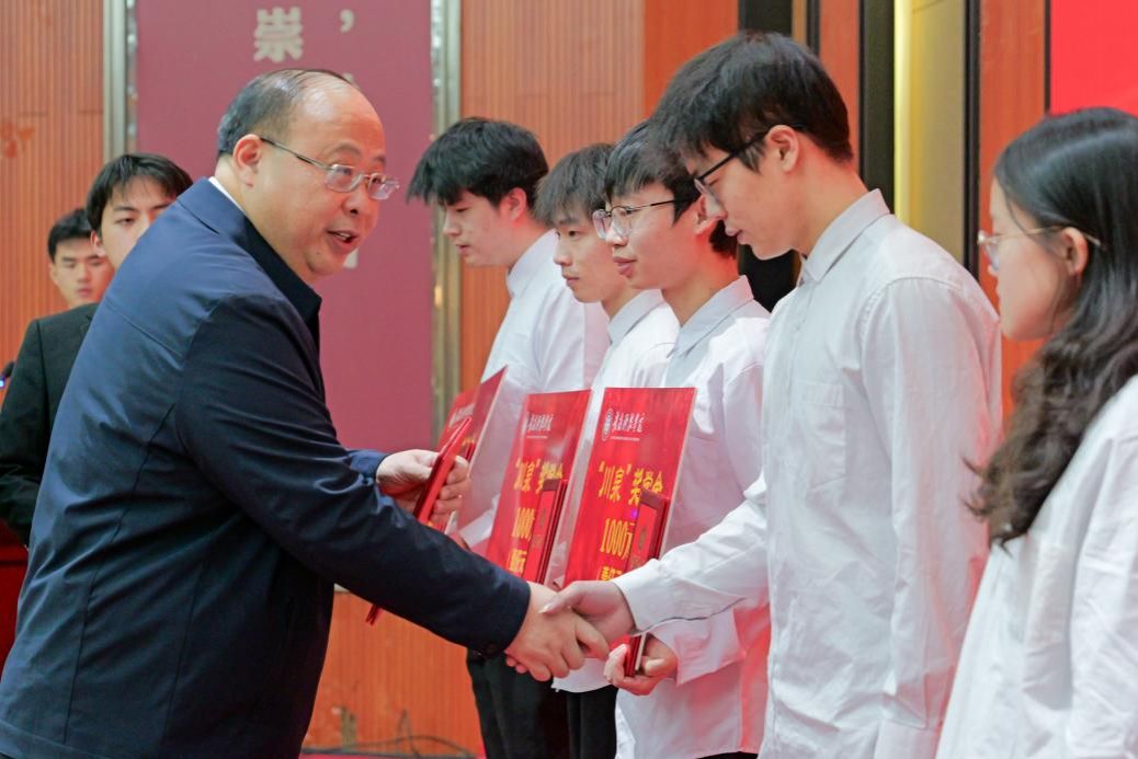 “爱云”奖学金获奖者代表自动化221班陈希和“川泉”奖学金获奖者代表材控211班饶宇鸿分别上台发言。他们结合专业学习、学科竞赛、社会实践等多个维度,分享了自己的成长经历和心得感悟。这些事迹不仅触动了参会的师生,也极大地激发了大家的工作与学习热情。