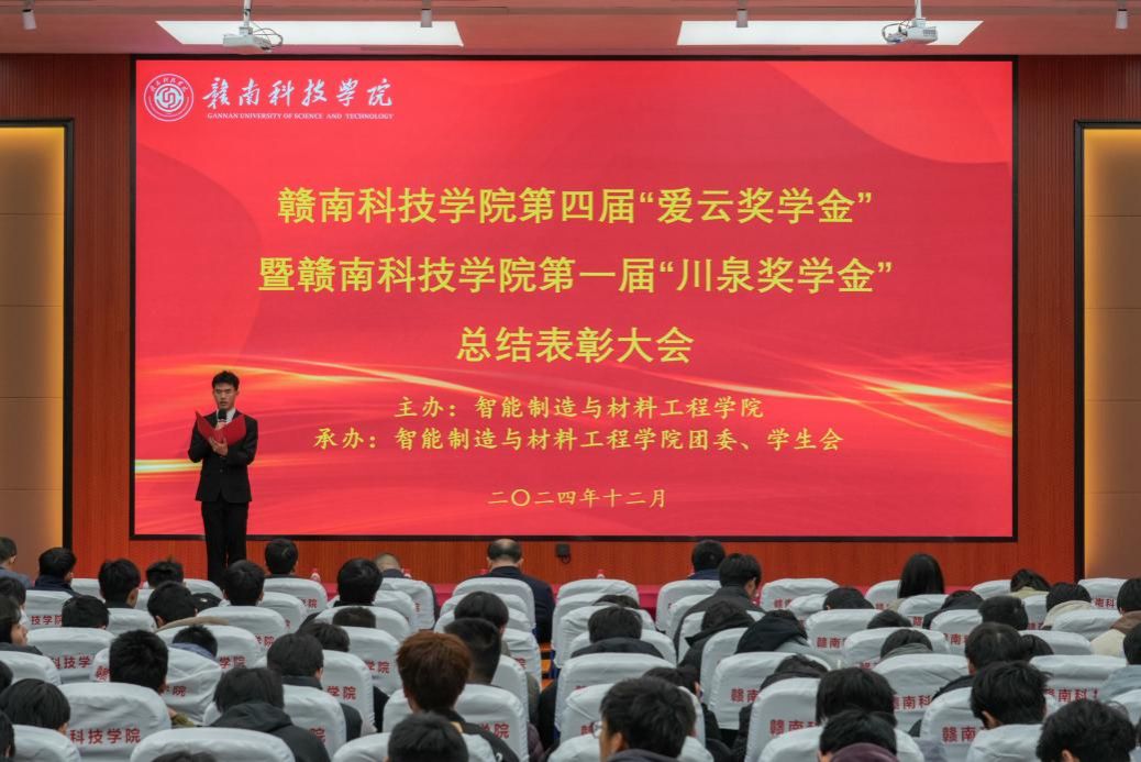 本网讯:12月24日晚,公司在图书馆学术报告厅举办第四届“爱云”奖学金暨第一届“川泉”奖学金总结表彰大会。公司党委委员、副董事长左群出席活动,智能制造与材料工程公司党委副书记朱根松,党委委员、副经理刘辉,党委委员关开荣、肖志华及公司全体辅导员、员工代表参加此次表彰大会。
