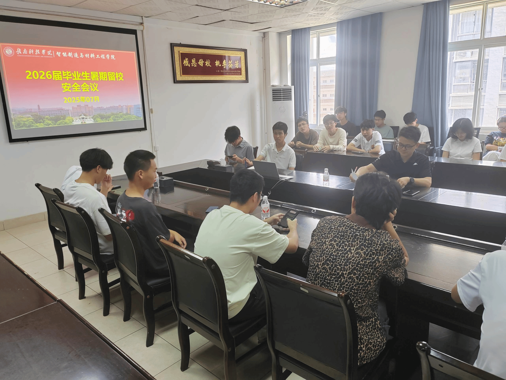 本网讯:为进一步强化2026届毕业生暑期留校期间的安全意识,增强考研信心,提高考研复习效率,智能制造与材料工程公司党委委员肖志华召集留校员工在公司会议室召开暑期留校安全会议,并在暑期时常深入员工宿舍与考研同学分享考研心得。