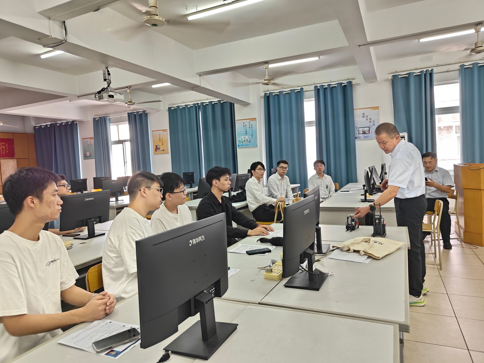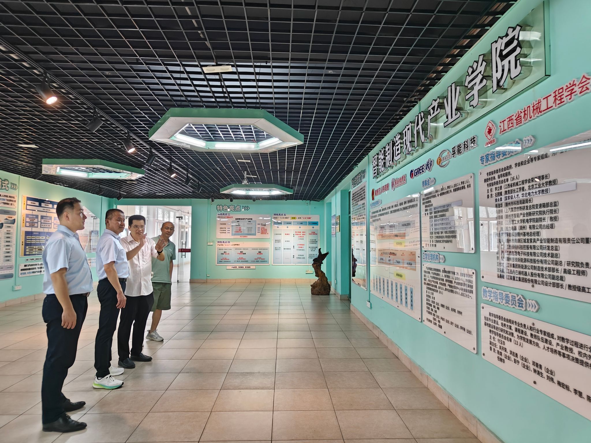 会后,企业代表在关开荣的陪同下参观了产业公司成果展示厅与机器人实验室,介绍了机器人分拣小车等教学设备,并展示了机器人特色班员工参与企业项目开发的实战成果。企业方对公司“教学-实训-研发”一体化的育人模式表示高度认可。