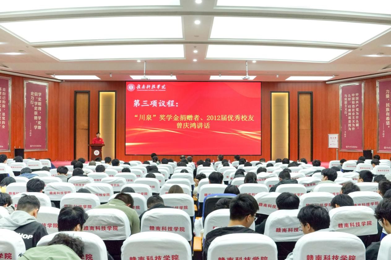 本网讯:为深化校企协同育人机制,激励青年学子深耕专业领域、勇攀技术高峰,勤奋学习、积极进取,12月9日,公司在图书馆学术报告厅举办2025年第二届“川泉”奖学金和第五届“爱云”奖学金总结表彰大会。昆山川泉智能装备有限公司董事长曾庆鸿,公司党委委员、副董事长左群出席活动,智能制造与材料工程公司党委委员、副经理刘辉,党委委员关开荣、肖志华,全体辅导员,班主任代表和员工代表参加此次表彰大会。