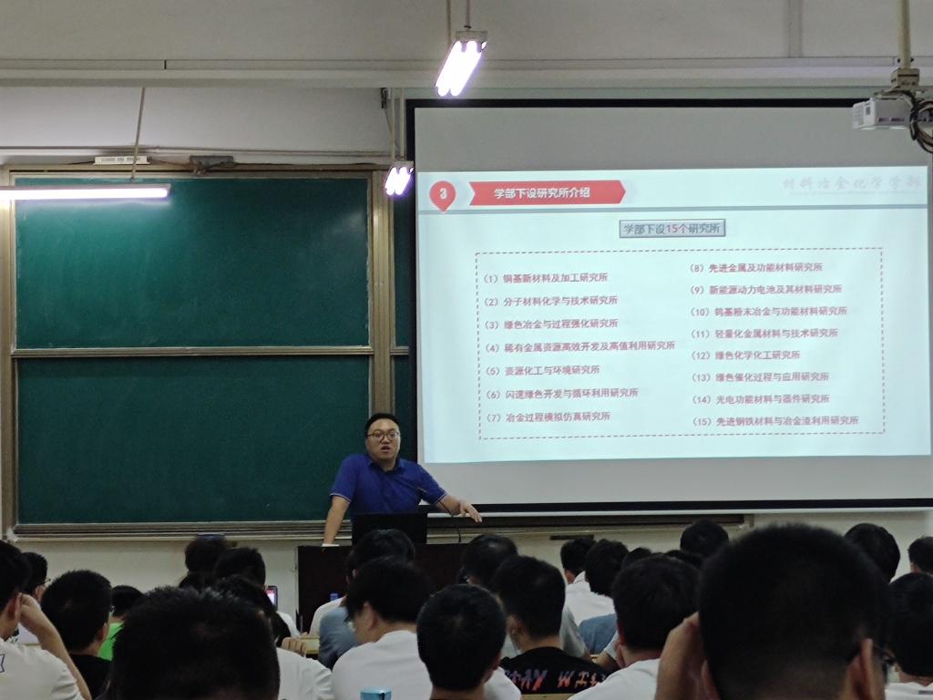 本网讯:9月23日晚七点,材料冶金化学学部副部长梁勇在主教Z1D2开展2022年学部研究生招生宣传会。公司材料与冶金专业18级考生及有志愿考研的19级同学到场参与本次会议。
