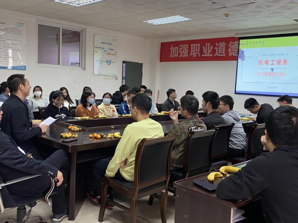 本网讯:为进一步为2023届考研毕业生鼓舞斗志,与考研学子并肩作战,共同坚持走完“最后一公里”,11月2日至11月10日,机电工程系通过线下茶话会的形式对2019级电气、机电、冶金等9个专业开展了5场考研交流会。本次考研交流会主要由机电工程系领导班子、各专业教研室负责人、19级班主任、19级辅导员及全体考研同学共同参加。