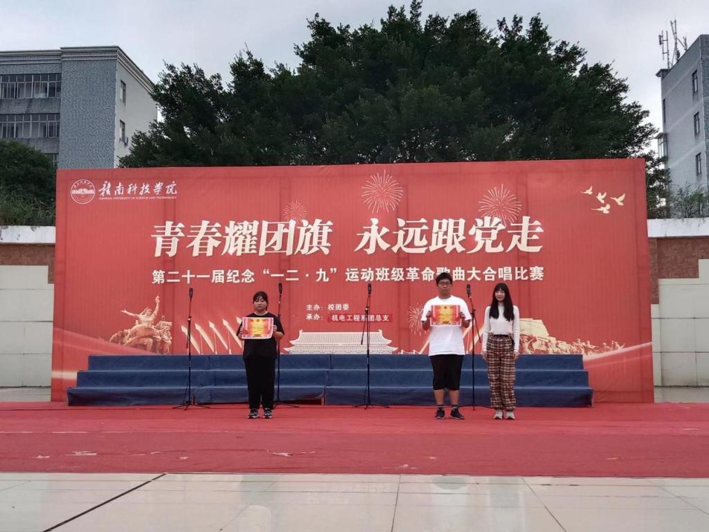 本网讯:为纪念伟大的一二·九运动,机电工程系于11月20日在冶金广场举办了第二十一届一二·九运动革命歌曲合唱比赛,比赛分为老生组和新生组,在上午有条不紊地排练结束后,老生组于下午两点开始比赛,新生组于晚上七点开始比赛。