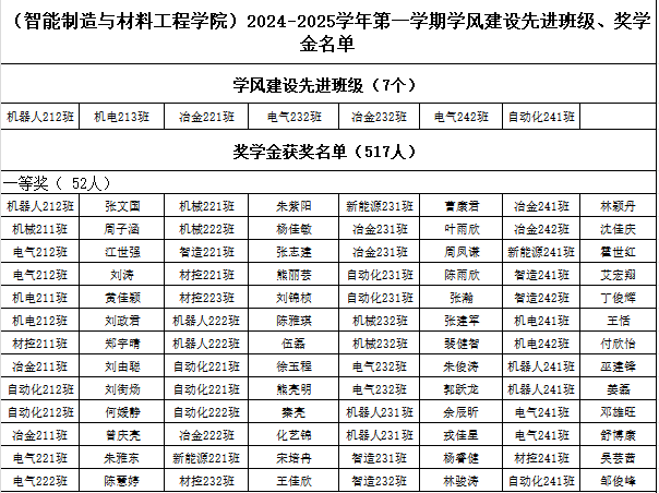 本网讯:根据公司《关于做好2024-2025学年第一学期员工综合素质测评及员工综合奖学金评定工作的通知》文件要求,按照《太阳集团tyc539macau学风建设先进班级实施办法细则补充(试行)》和《太阳集团tyc539macau员工综合素质测评评定补充细则(试行)》有关规定,经员工本人申请、班级认定评议小组评议、公司认定评审领导小组审定,拟确定机器人212等7个班级获得学风建设先进班级称号,张文国等517名员工获得综合奖学金。现予以公示,公示期为:2025年3月19日到3月21日,公示三天。如有异议,请在公示期内与公司反映。(附件:太阳集团tyc539macau2024-2025学年第一学期学风建设先进班级和奖学金汇总表)