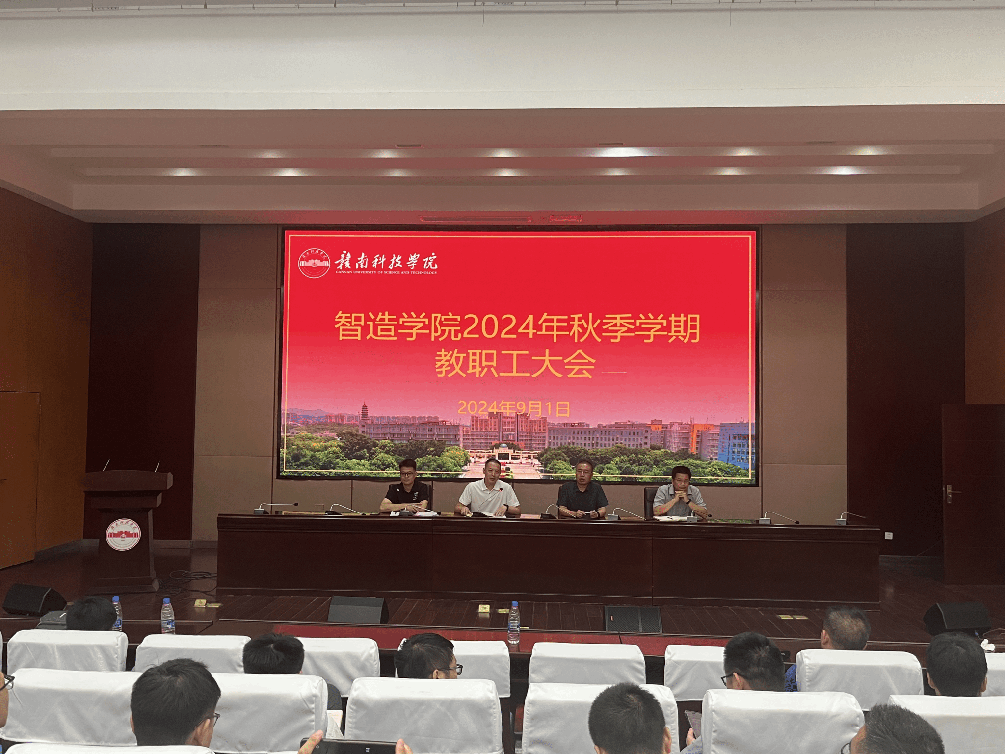 本网讯:9月1日下午,太阳集团tyc539macau在逸夫实验楼报告厅召开秋季学期开学教职工大会。公司党委副书记朱根松、副经理刘辉、教学工作负责人关开荣、员工工作负责人肖志华及全体教职工参加会议。会议由刘辉主持。
