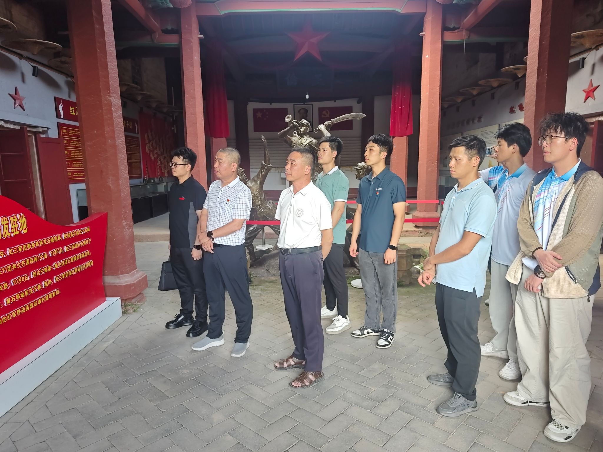 在璜村革命旧址群,全体人员首先参观了红三军团指挥部旧址。通过观看历史照片、文物展陈和场景复原,深入了解彭德怀等革命前辈在长征前夕严格执行群众纪律、带头精简行装的事迹。璜村讲解员在红军标语墙前现场讲授党课,结合“半条被子”“一根灯芯”等经典故事,阐释中央八项规定与苏区干部好作风的历史传承关系。