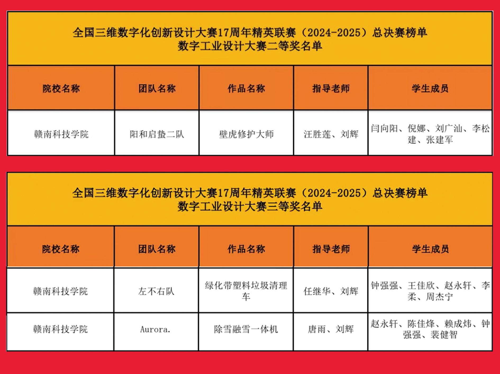 本网讯:2025年7月12日第十七届全国三维数字化创新化设计大赛精英联赛(以下简称“精英联赛”)落下帷幕。在刘辉、唐雨等老师的指导以及同学们的共同努力下公司智能制造与工程材料公司共三支队伍参加精英联赛国赛,其中一支队伍获得国家级二等奖,两支队伍获得国家级三等奖。