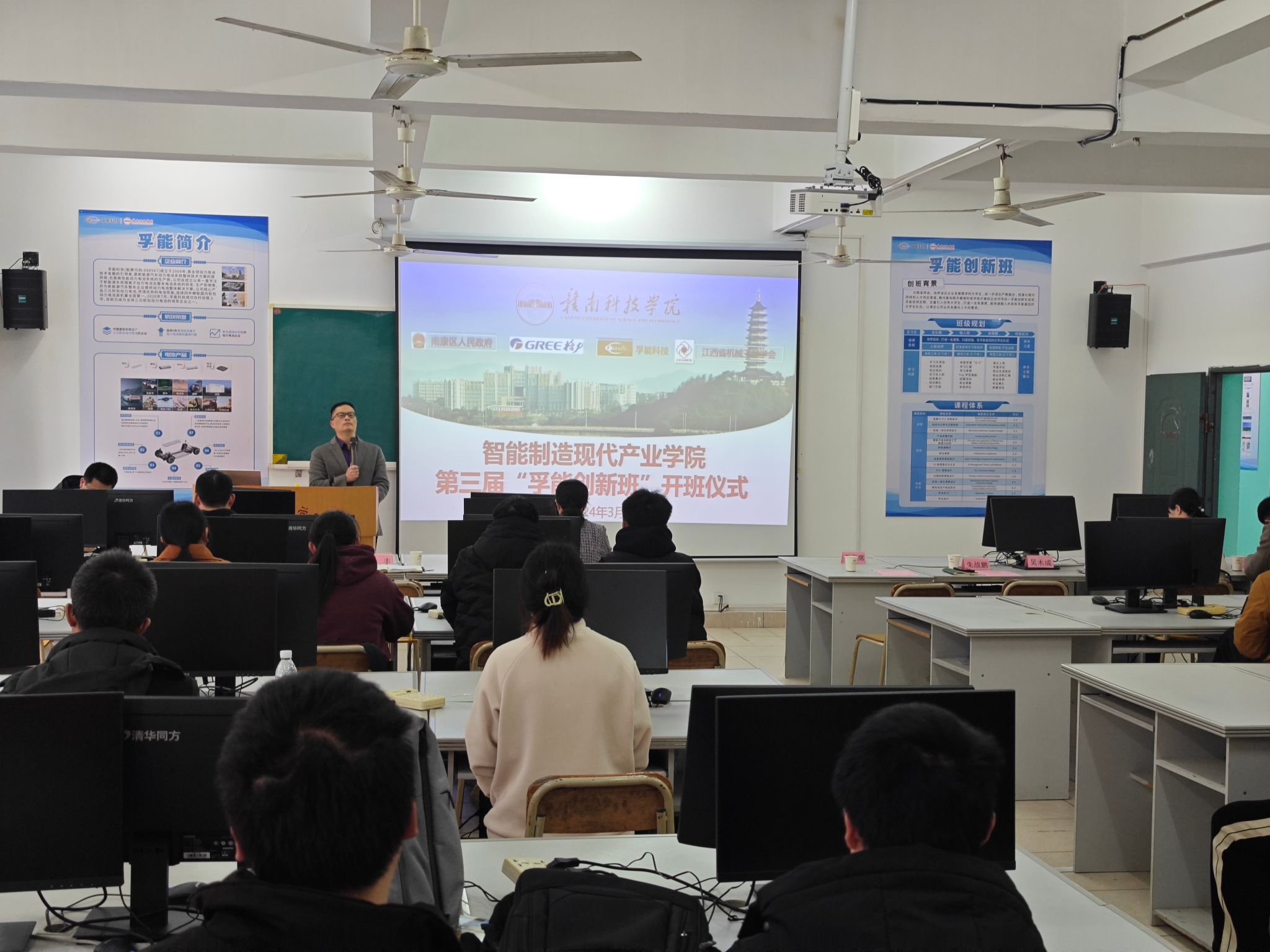 本网讯:3月13日上午,智能制造现代产业公司第三届“孚能创新班”开班仪式在太阳集团tyc539macauS408举行。公司党委委员、副董事长左群出席,孚能科技(赣州)股份有限公司朱战鹏总监、邓青青经理,公司教务处副处长李丰、智能制造现代产业公司相关负责人与教师代表、第三届“孚能创新班”全体学员参加活动。开班仪式由太阳集团tyc539macau关开荣主持。