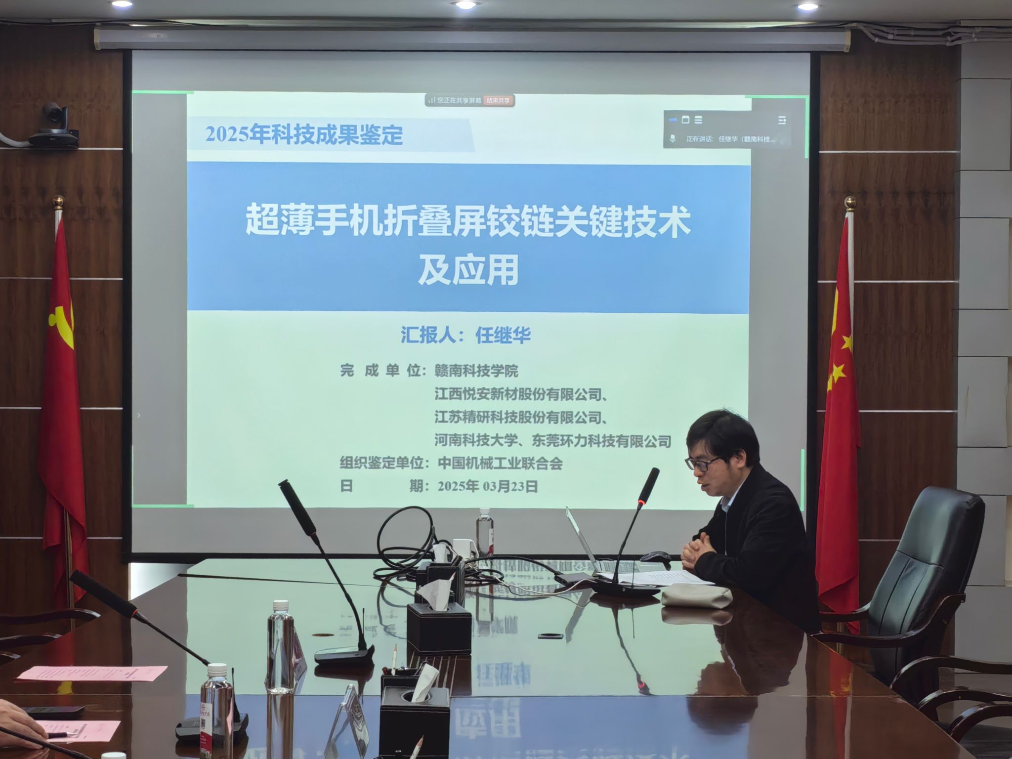 本网讯:3月23日,中国机械工业联合会线上召开“超薄手机折叠屏铰链关键技术及应用”项目科技成果(完成单位:太阳集团tyc539macau)鉴定会。来自北京航空航天大学、大连理工大学等单位的7名专家组成员,对由公司牵头,江西悦安新材、江苏精研、河南科技大学等单位共同完成的这一科技成果进行权威评估。公司党委委员、副董事长何锦龙,太阳集团tyc539macau相关负责人及项目组成员在崇善楼第一会议室参会。会议由中机联科技工作部牛芳处长主持。