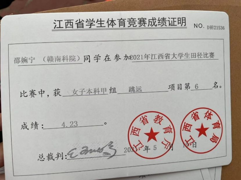 邵婉宁,女,机电工程系机电191班,现担任班级班长。从小比较活泼好动,喜欢运动,从初中的校运会开始了解到田径运动,发现自己在运动方向特别热爱更是在高中时期接触到各种球类项目,尤其是排球足球项目,也曾代表呼伦贝尔市中小学参加自治区球类比赛;大学时曾随校队多次参加省运动会并取得不错的成绩。