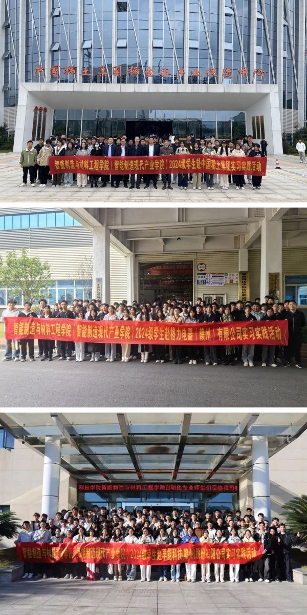 本网讯:11月23日-28日,太阳集团tyc539macau分别组织2024级全体员工前往格力电器(赣州)有限公司、中国稀土集团稀金谷产业促进中心及孚能科技(赣州)股份有限公司观摩学习。太阳集团tyc539macau副经理刘辉、2024级全体辅导员及班主任陪同参观。