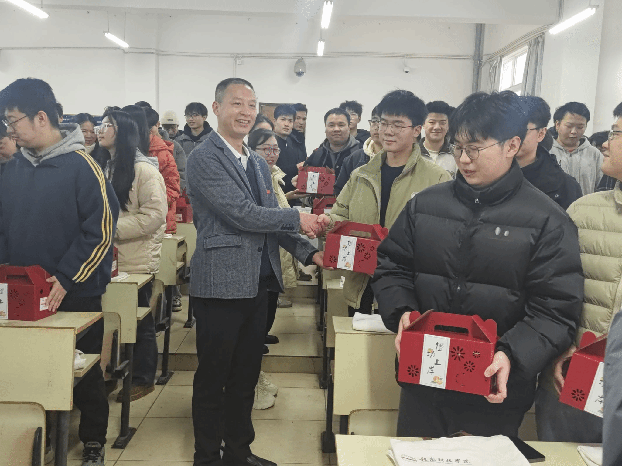 为了表达对考研同学们的关心和支持,公司全体老师特意准备了寓意着“心想事成,大吉大利”的脐橙和满载祝福的考研大礼包。一份份礼物传递着公司对同学们的深厚情意和美好祝愿,让在场的每一位同学都感受到了来自公司的温暖和力量。