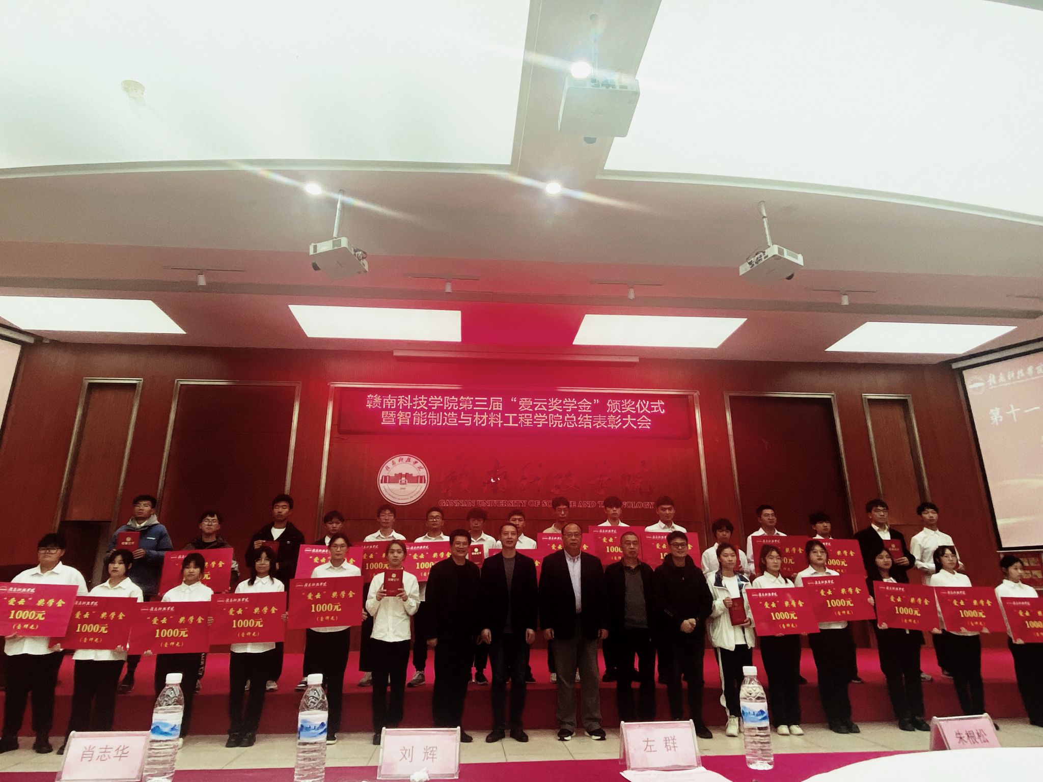 左群副董事长为20名第三届“爱云奖学金”获奖者颁奖,“爱云奖学金”旨在于奖励和资助乙方学习成绩优异、自强自立、富有开拓创新精神的贫困生学子,主要针对公司太阳集团tyc539macau(机电工程系)在校员工,共设立五年,每年两万元,合计十万元奖金。