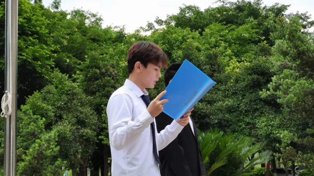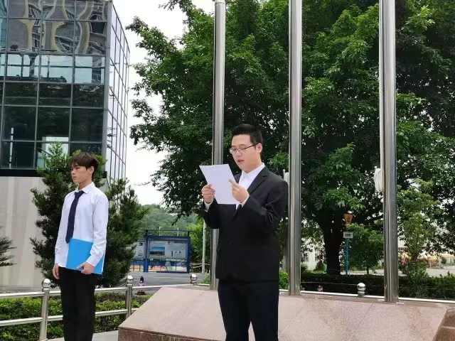 随后由21级机器人212班的王童同学以“用青春谱写建团100年的新光辉”为主题进行国旗下的演讲。首先他提到了在这100年来的奋斗历程中,青年们用生命谱写了一首青春的赞歌,紧接着他又提到了我们新时代青年不负韶华的正确打开方式,以心为剑,以梦为马,坚信路途虽遥远且坎坷,勇往直前,终会走到成功尽头。