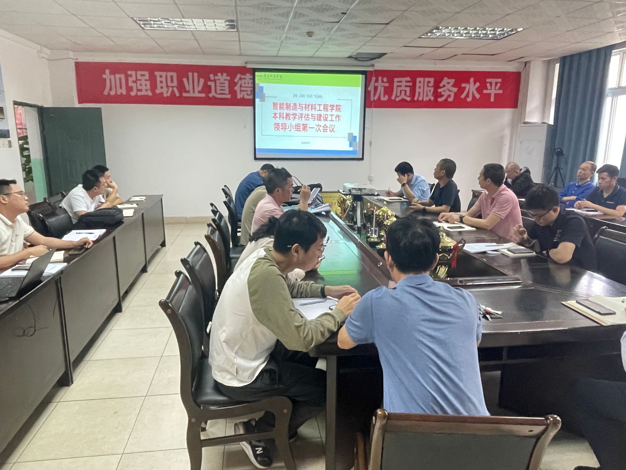 在本次会议中,公司制定《太阳集团tyc539macau本科教学工作合格评估实施方案》(初稿),依据实施方案成立了公司本科教学工作合格评估领导小组,并组建教学评估与建设办公室、教学质量组、学风建设组及宣传与督导组。