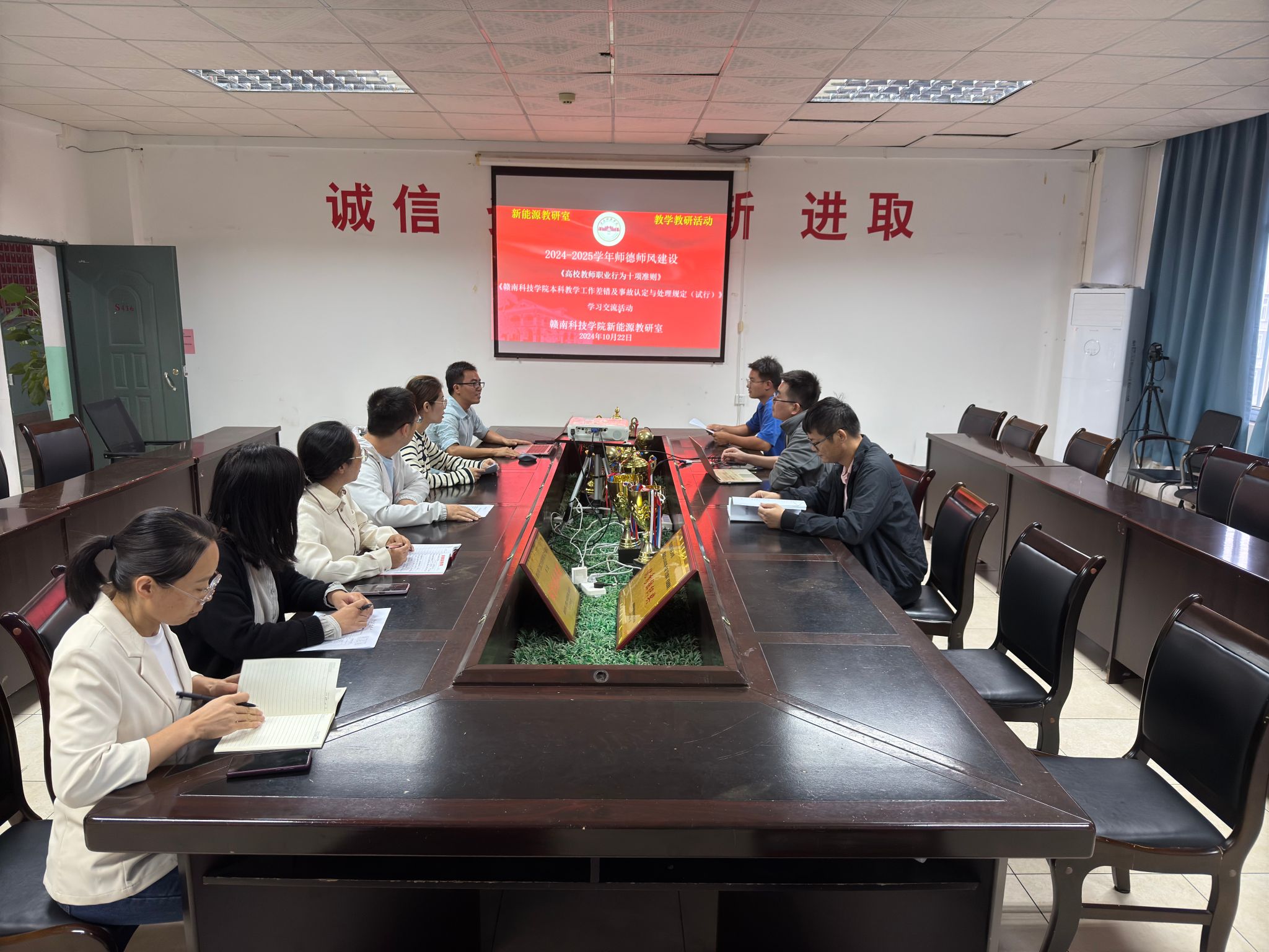 本网讯:10月22日下午,太阳集团tyc539macau新能源教研室组织全体教师在工程楼S416会议室开展了本学年度师德师风建设的教学与研究主题活动
