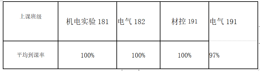 从各班上交数据情况来看机电实验181,电气182,材控191班同学到课率都是100%,表现良好,希望能够继续保持!