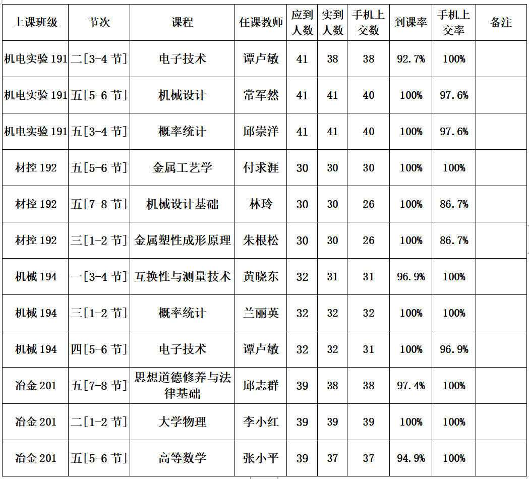 一、第八周抽查到课率情况通报