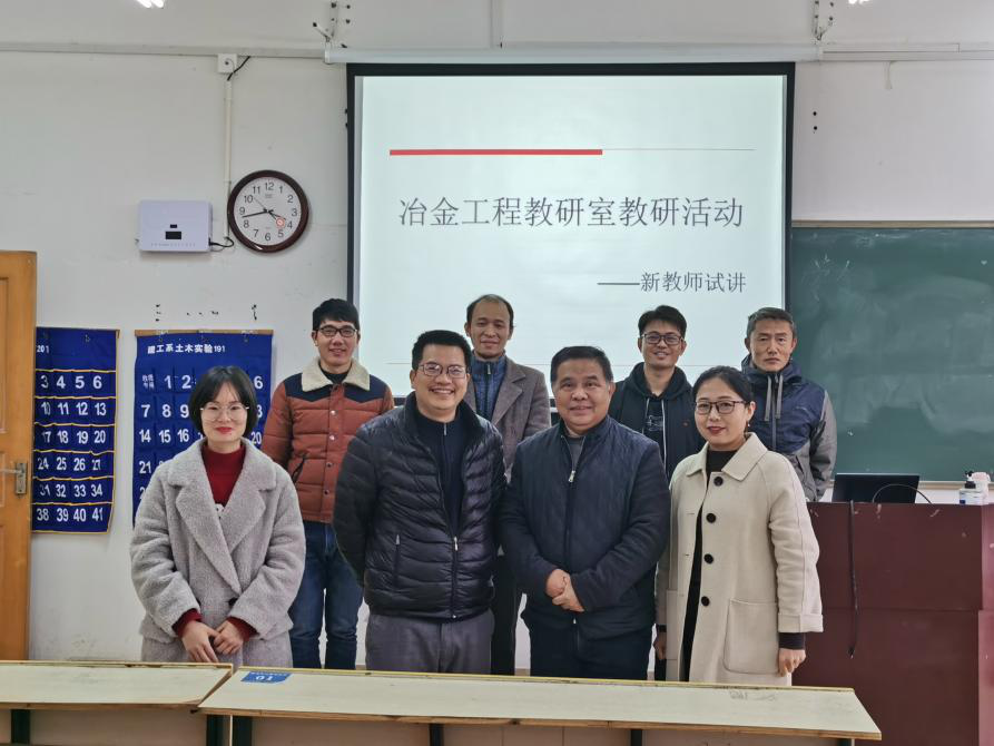 2022年1月11日下午,冶金工程教研室在主楼104教室进行了新入职教师下学期课程试讲及授课经验交流教研活动。机电工程系关开荣副主任,肖志华副主任及全体冶金工程教研室老师参加该活动。