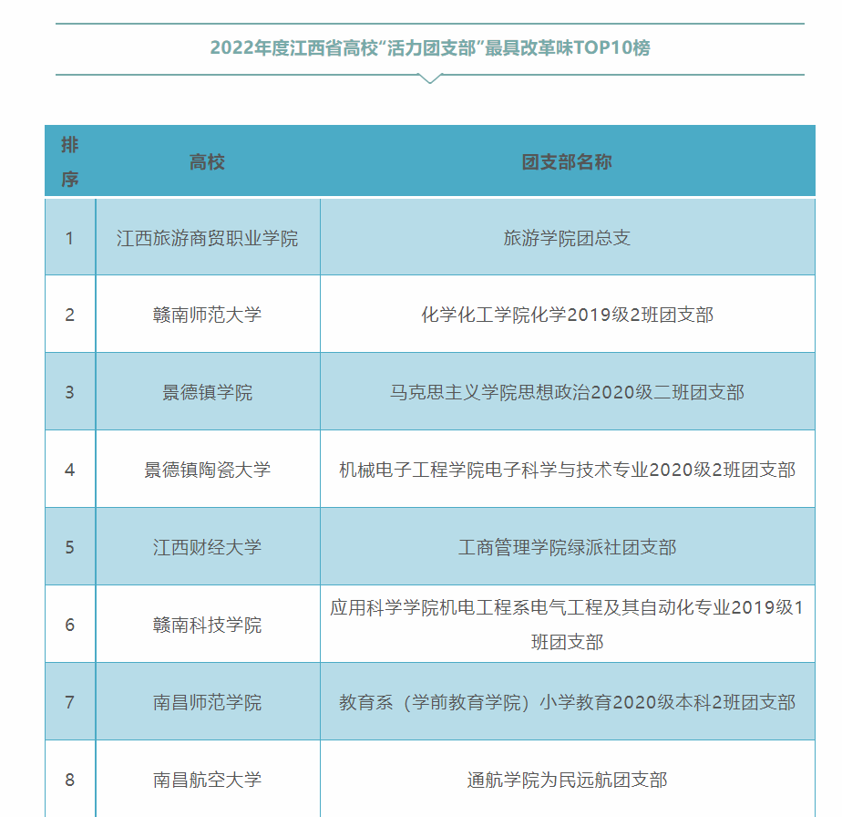 为深入贯彻“全团抓思想政治引领”“全团大抓基层”“全团抓公司”工作部署,落实《关于改革创新高校共青团工作 切实增强思想政治引领实效的若干措施》,激发高校团支部活力,促进员工社团建设管理,团省委、省学联开展了2022年度江西省高校“活力团支部”“活力社团”风采展示活动,通过新媒体展示的方式集中呈现了高校团支部、员工社团改革建设成果和典型经验。