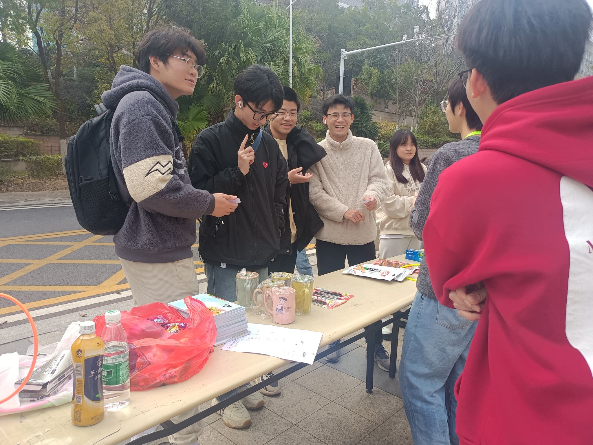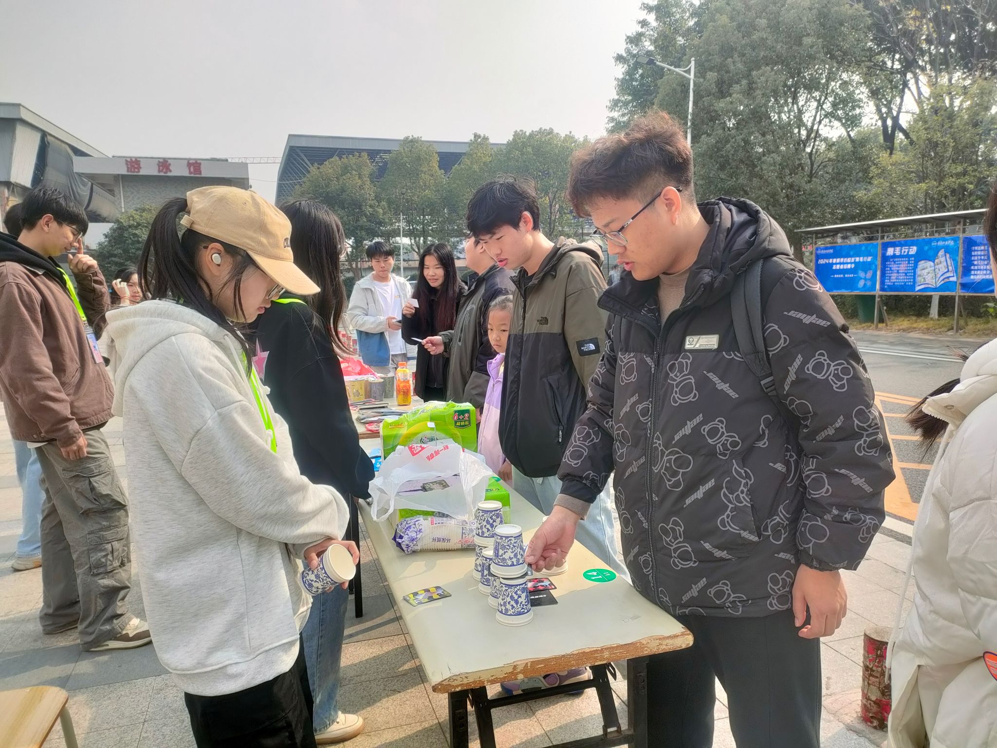 在本次活动中,选取了四项同学们喜欢的游戏进行互动,分别为“抽纸杯”、“听我说”、“诗词飞花令”和“套圈”。活动现场热闹非凡,同学们参与完游戏互动,脸上都露出来灿烂的笑容。